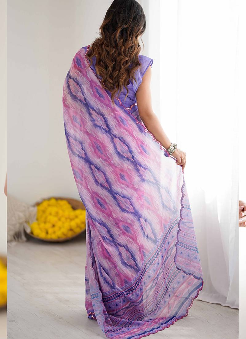 | Product Name | Lavender Georgette Printed Mirror Work Border Designer Saree | |