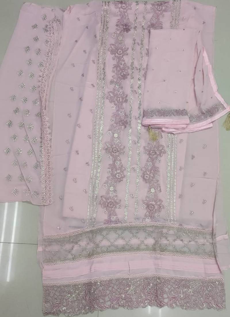 Light pink heavy faux georgette embroidery pakistani salwar suit semi stitched