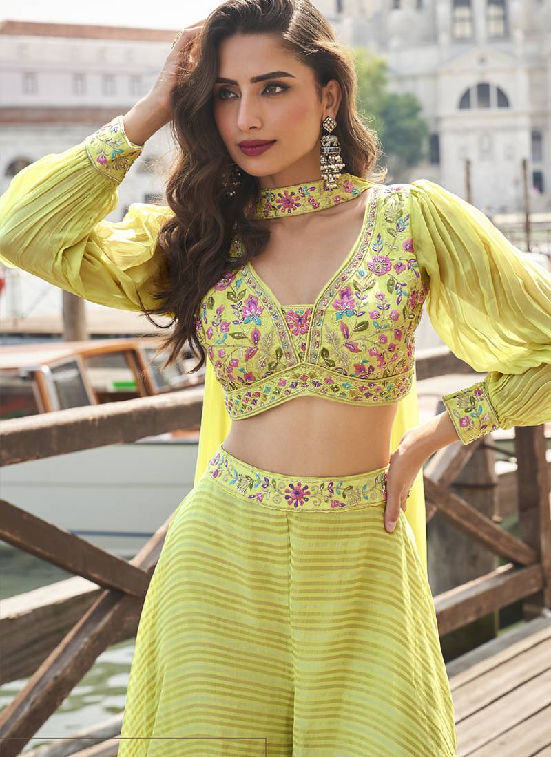 | Product Name | Lime Green Viscose Jacquard Silk Embroidered Western Plazzo Suit | |