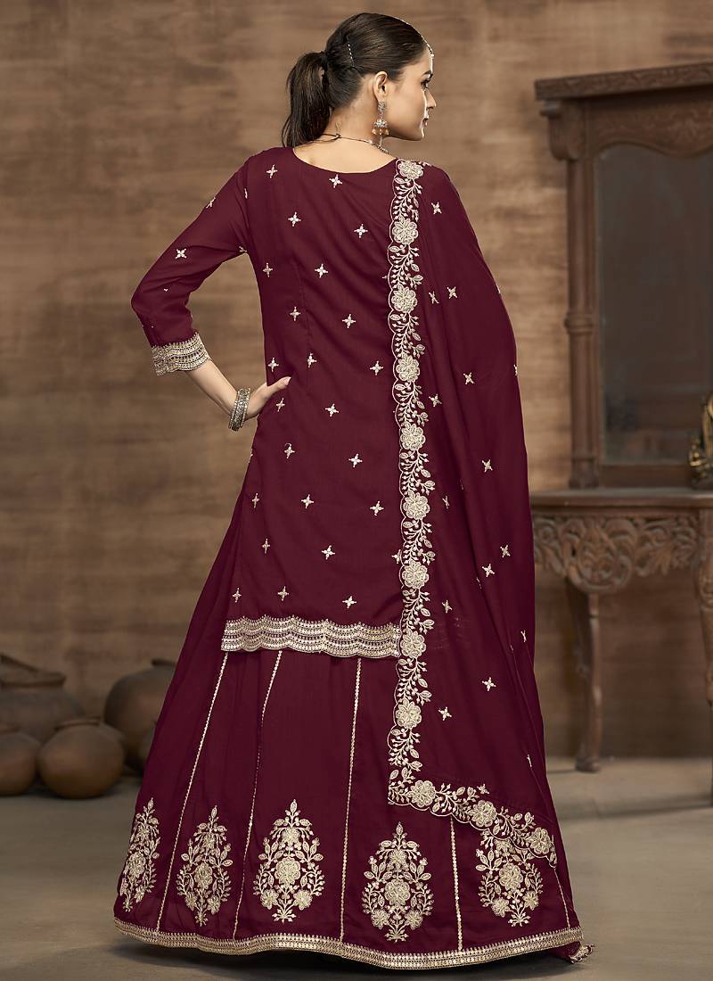 | Product Name | Maroon Vichitra Silk Embroidered Lehenga Style Suit | |