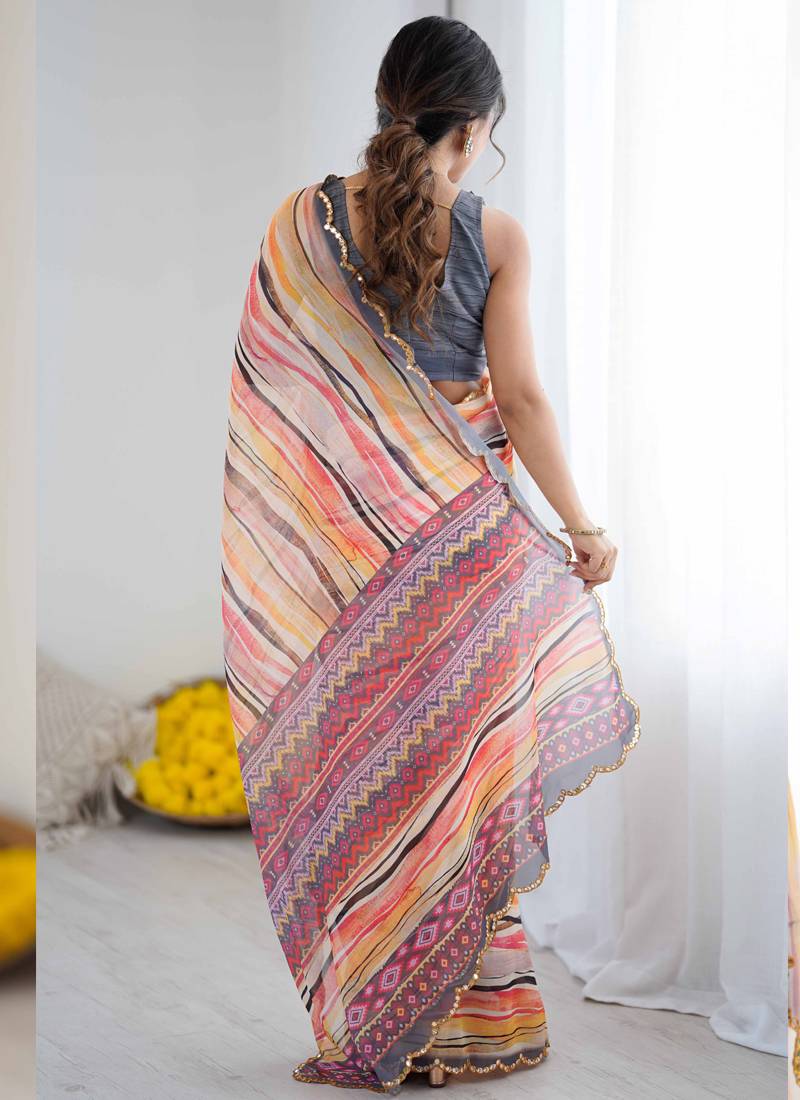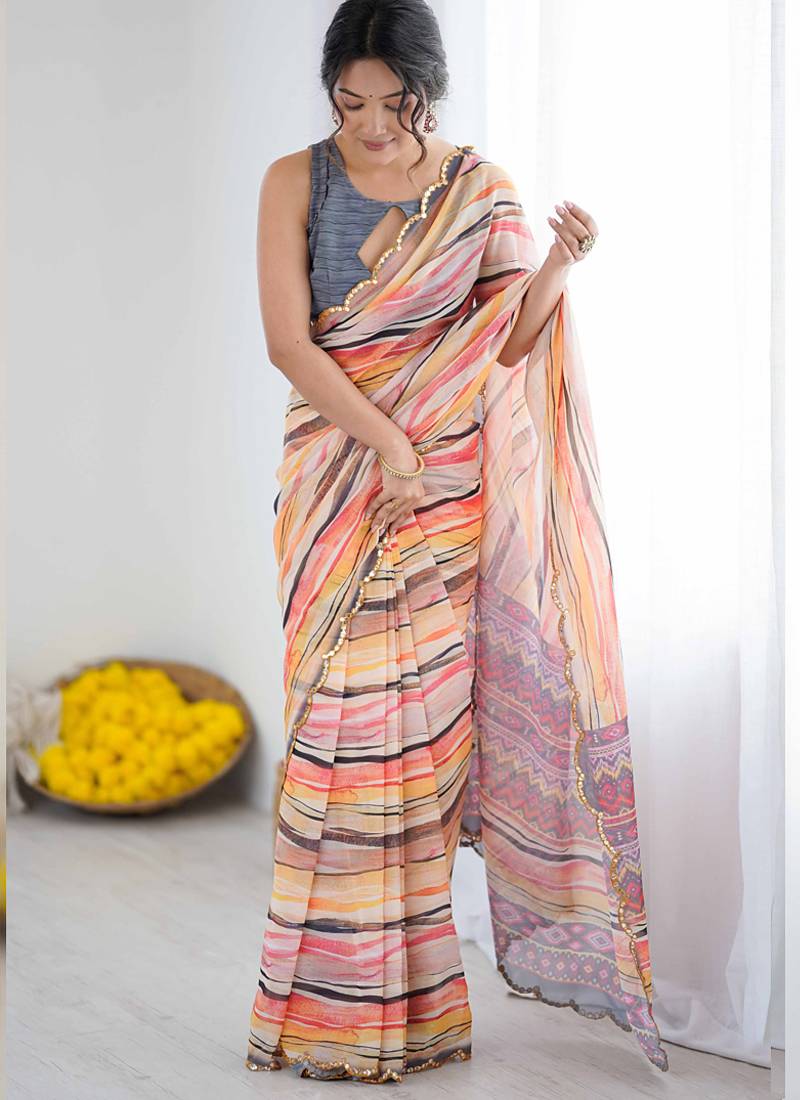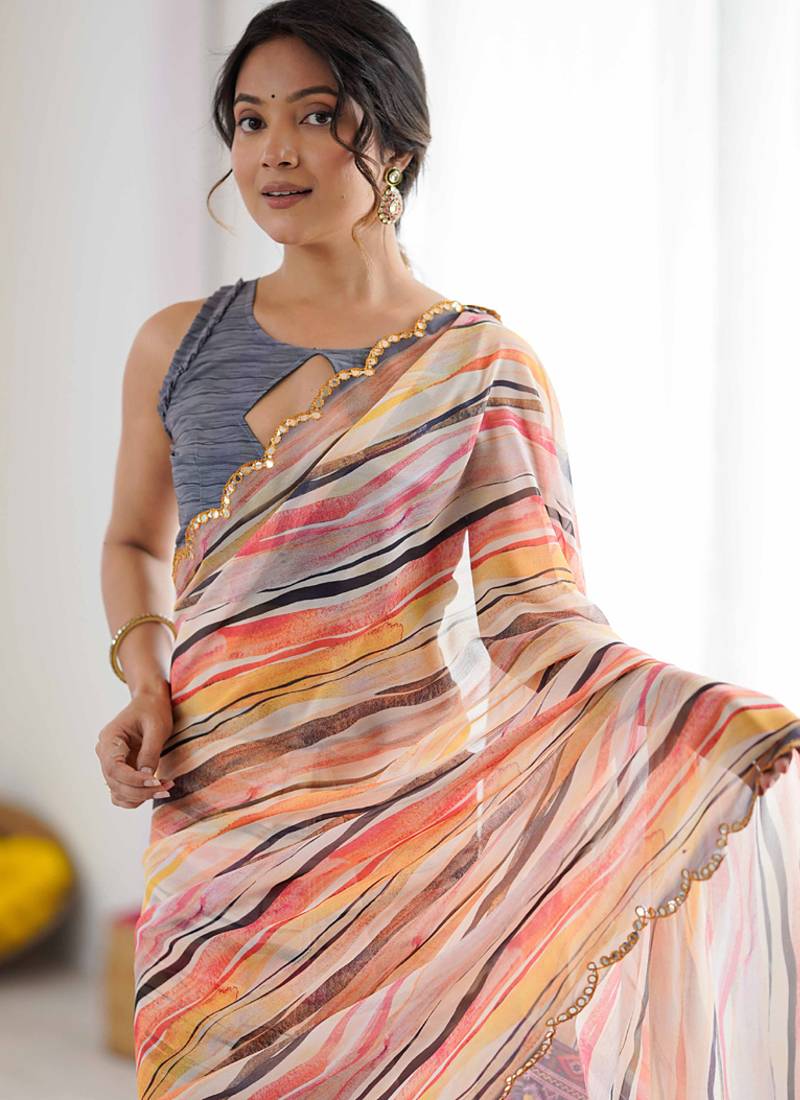 | Product Name | Multi Color Georgette Printed Mirror Work Border Designer Saree | |