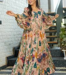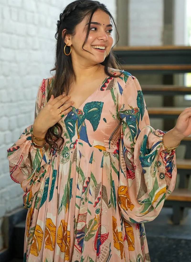 Multi color heavy air tex chinon silk digital print designer gown stitched
