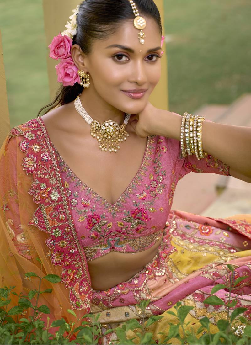 Multicolor silk embroidered & handwork wedding wear lehenga choli
