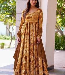 Mustard reyon digital print designer gown for festive stitched