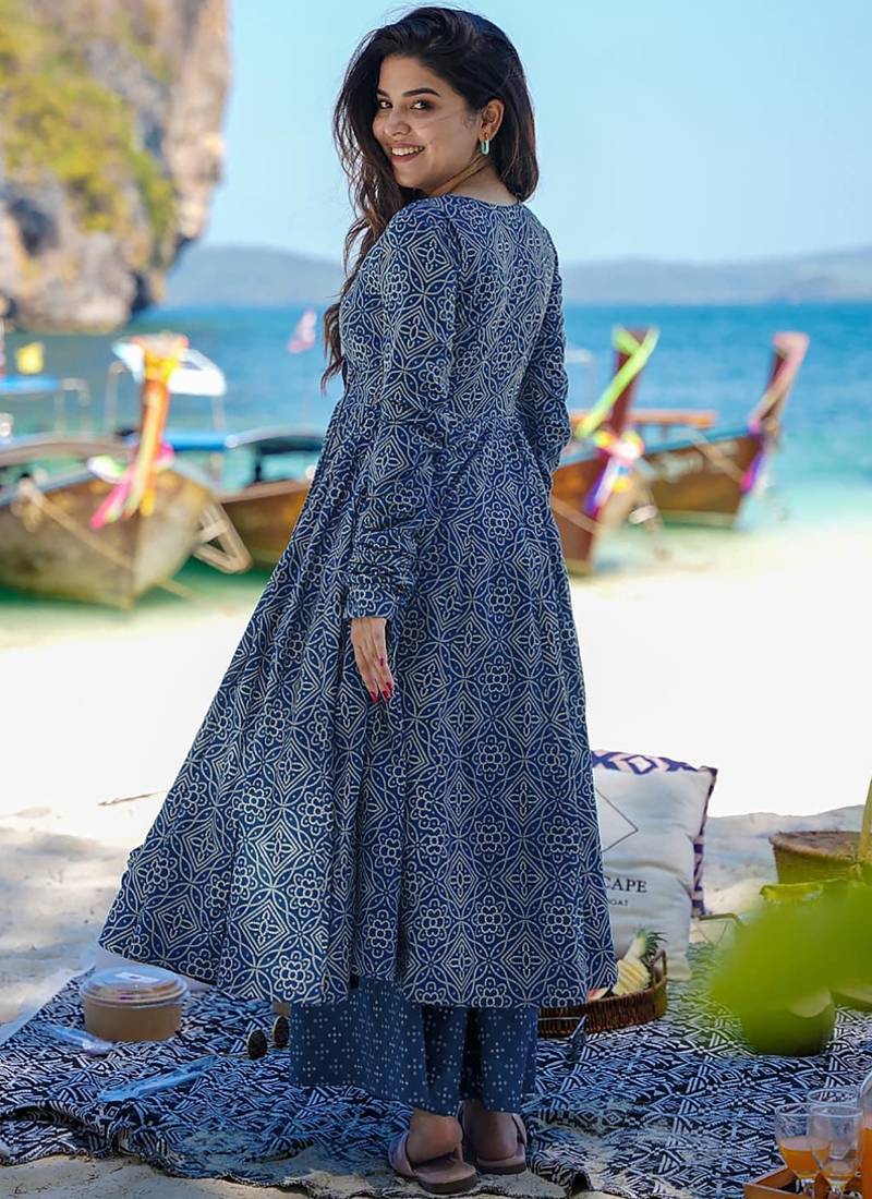 Navy blue pure muslin digital printed designer salwar suit stitched