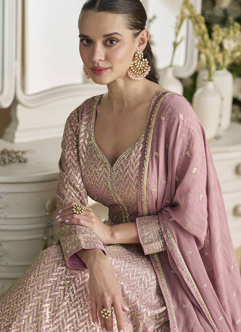 Onion pink georgette embroidered seroski zarkan anarkali suit stitched
