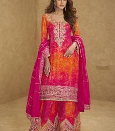 Orange and pink chinon silk emboidered palazzo suit stitched