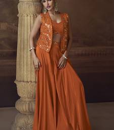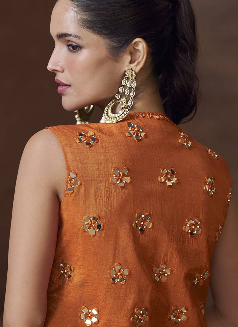 Product Name | Orange Real Chinon Silk Embroidered Jacket Stytle Plazzo Suit | |