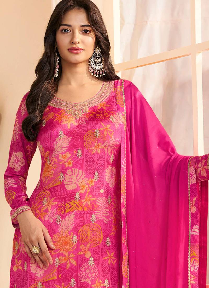 Product Name Pink Chinon Silk Embroidered Digital Print Designer Salwar Suit
