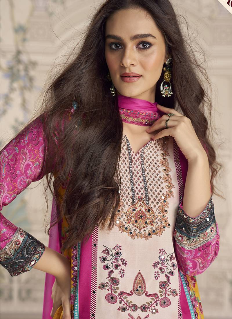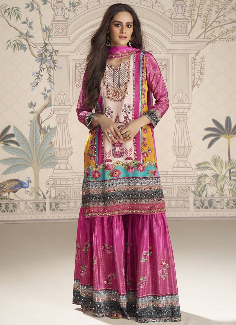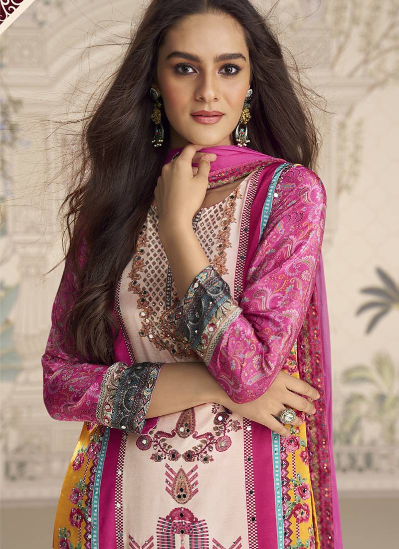 | Product Name | Pink Crerpe Silk Mirror Work Designer Plazzo Suit | |