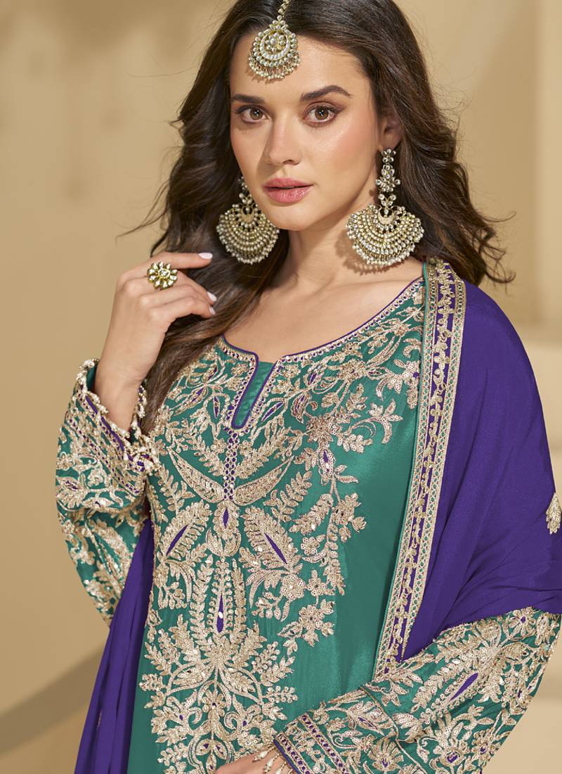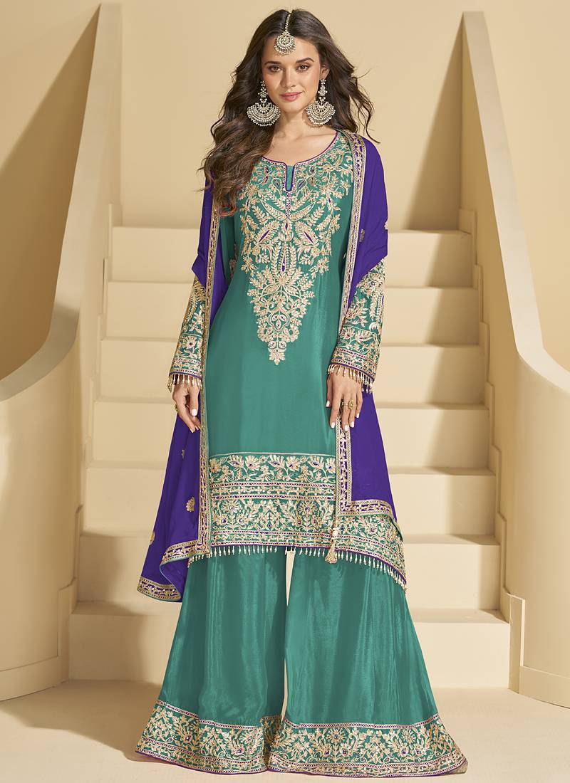 | Product Name | Rama Green Chinon Silk Embroidered Plazzo Suit | |