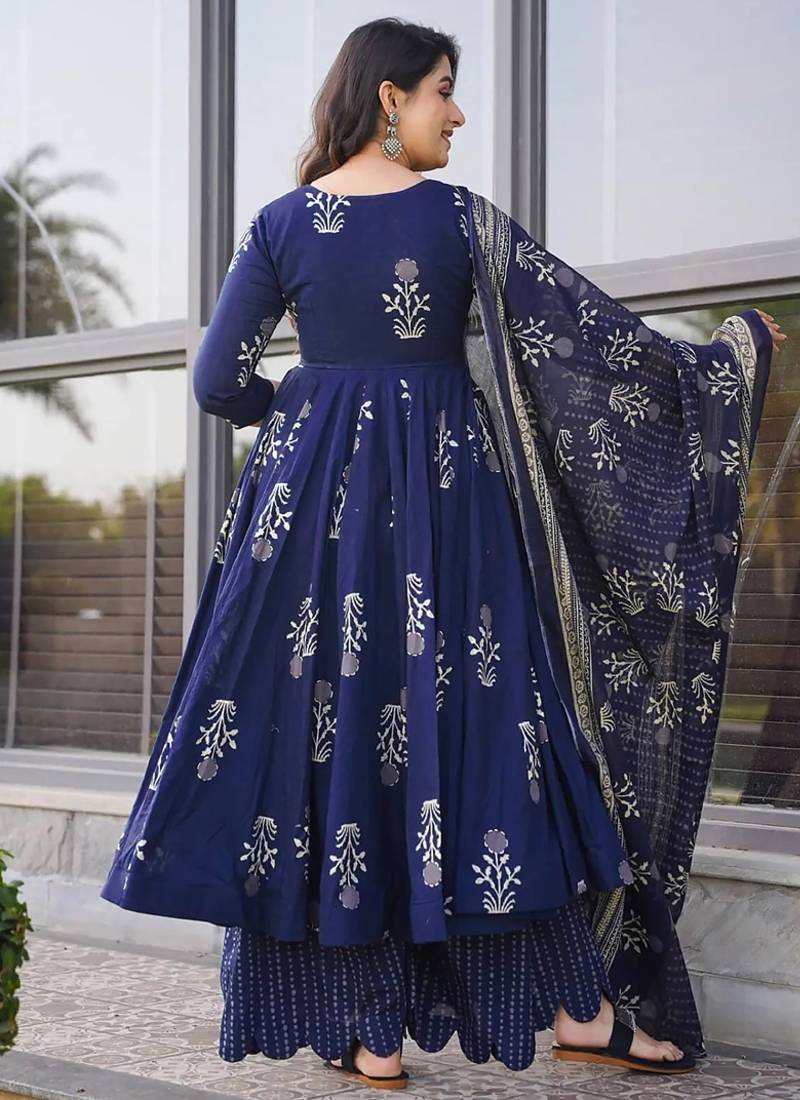 Royal blue pure muslin digital printed designer salwar suit stitched