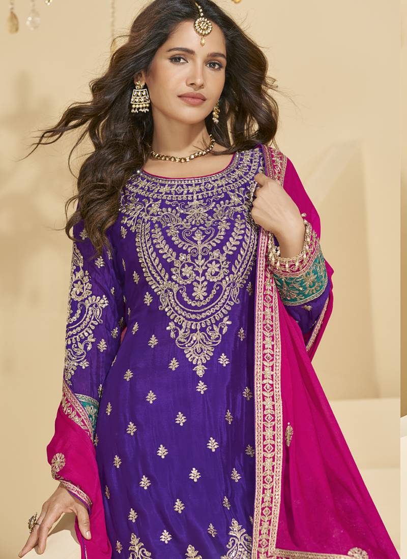 | Product Name | Violet Chinon Silk Embroidered Plazzo Suit | |