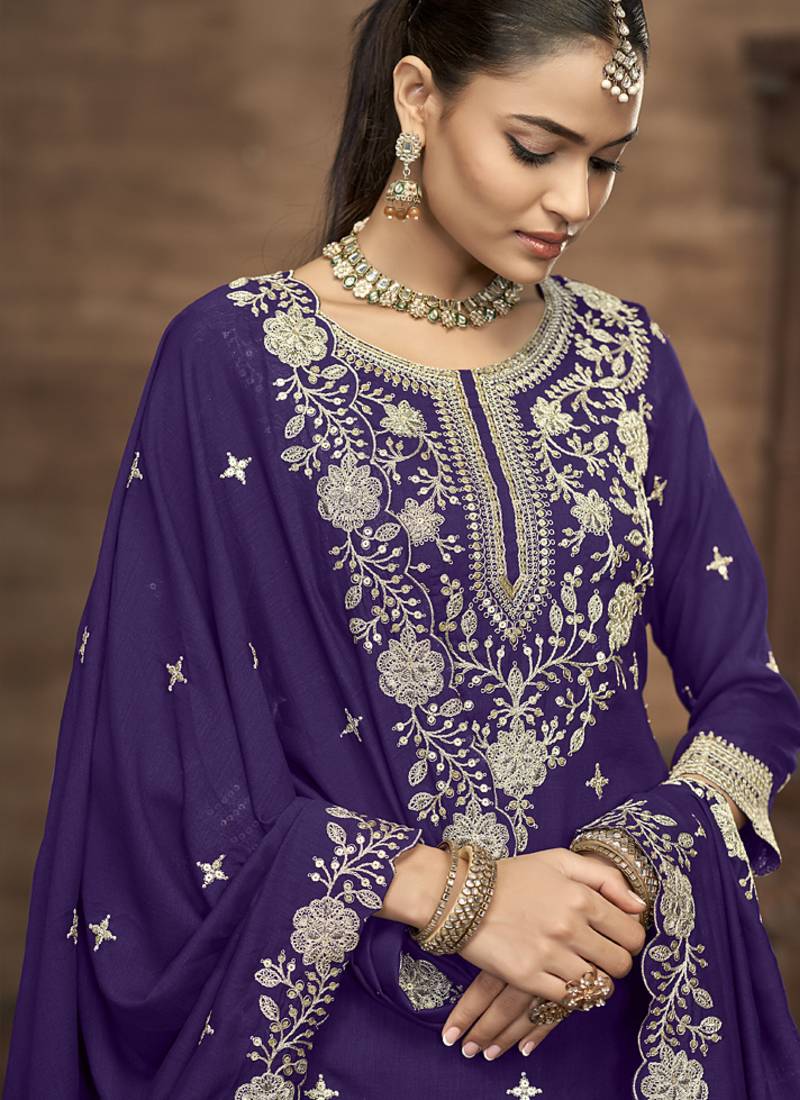 | Product Name | Violet Vichitra Silk Embroidered Lehenga Style Suit | |