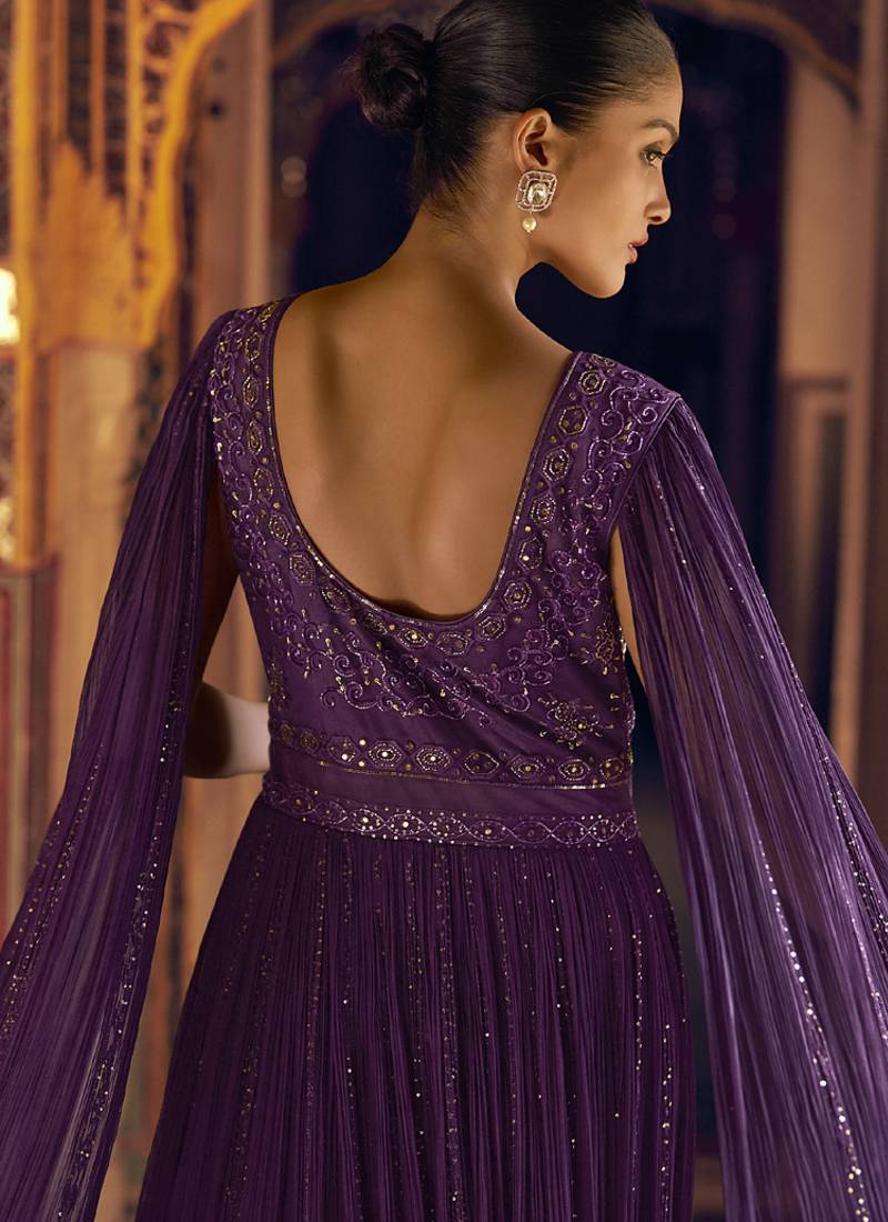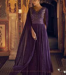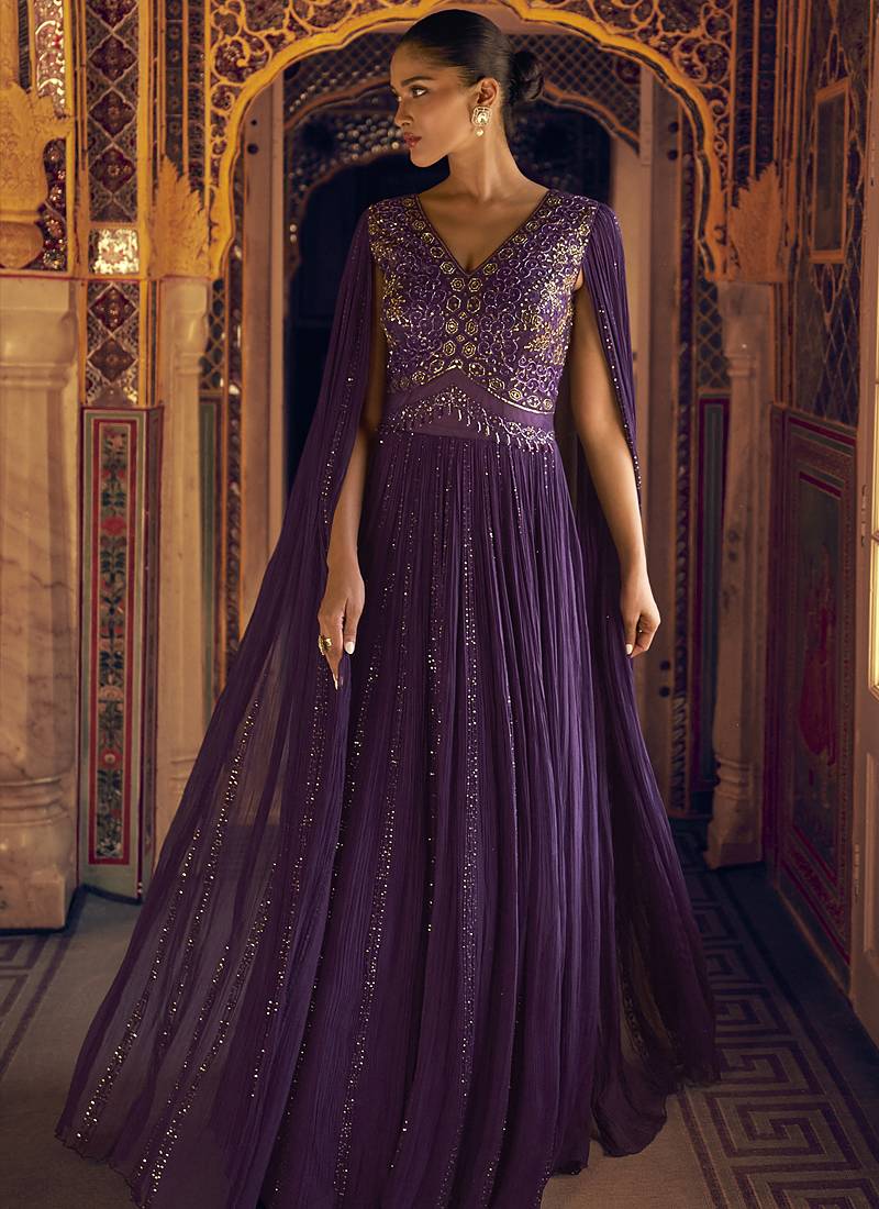 Violet viscos simmer jacquard silk embroidered gown stitched