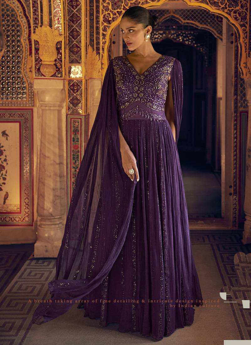 | Product Name | Violet Viscos Simmer Jacquard Silk Embroidered Gown | |