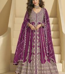 | Product Name | Wine Chinon Silk Embroidered Lehenga Style Suit | |