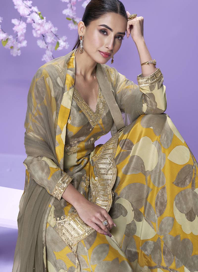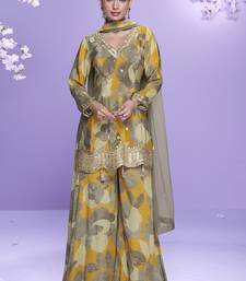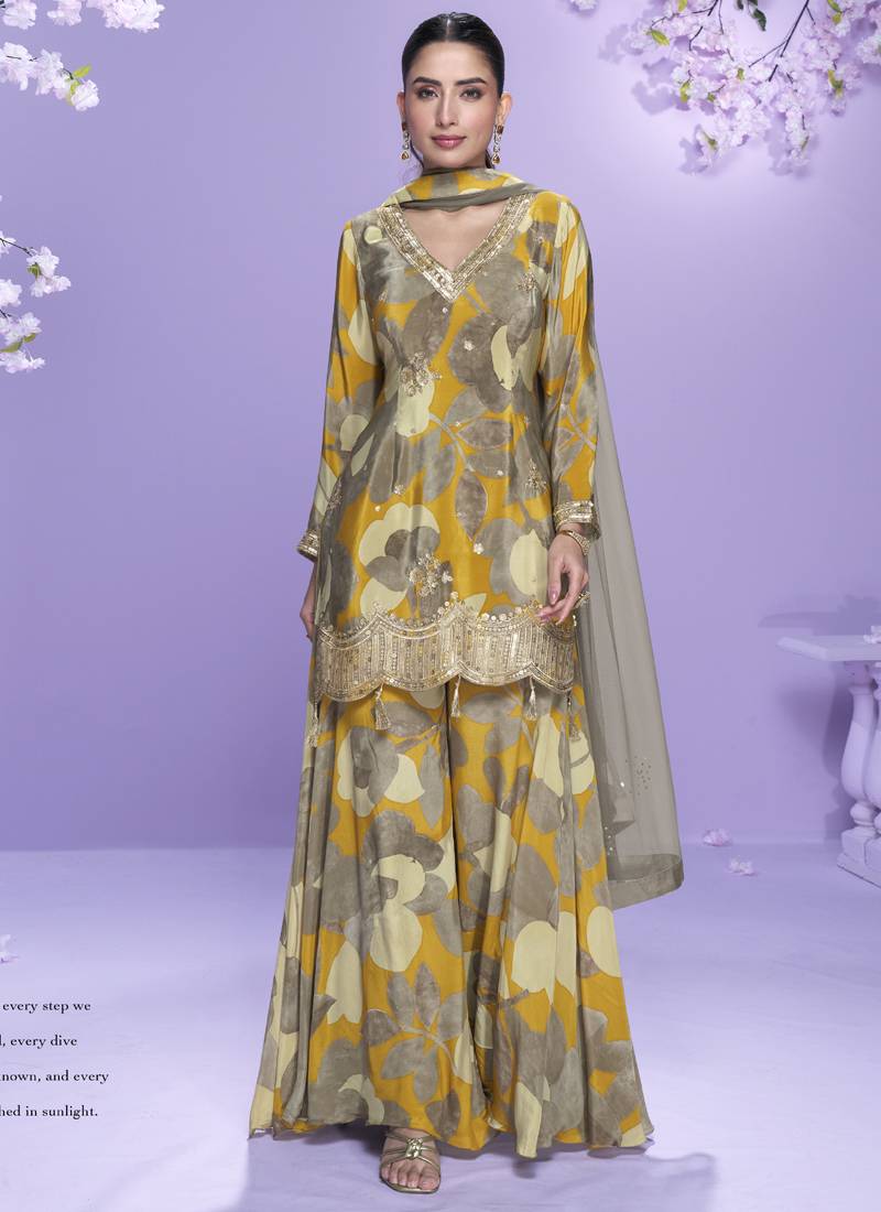 | Product Name | Yellow Chinon Silk Digital Embridered Designer Plazzo Suit | |