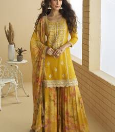 | Product Name | Yellow Chinon Silk Embroidered Designer Sharara Suit | |