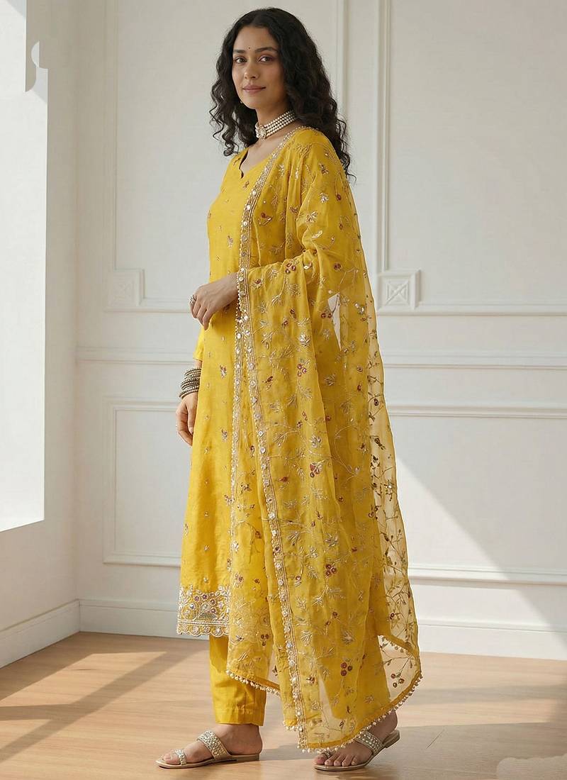 | Product Name | Yellow Shimmer Organza Embroidered Party Wear Suit | |