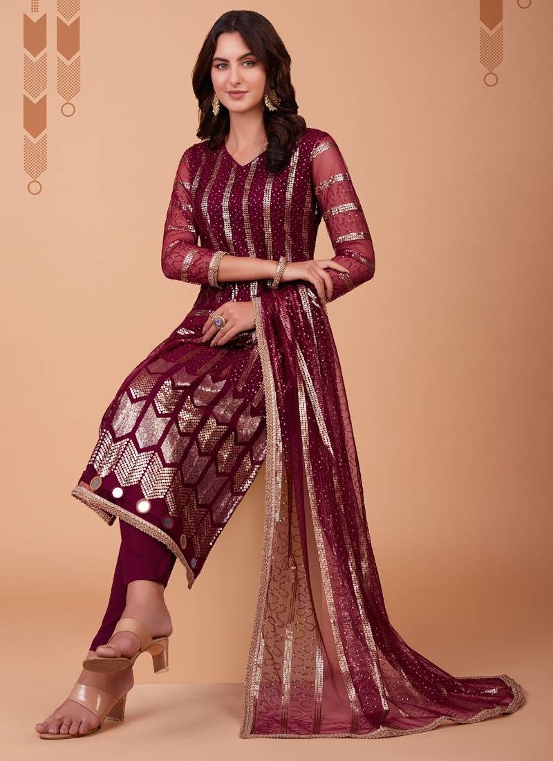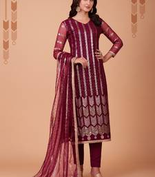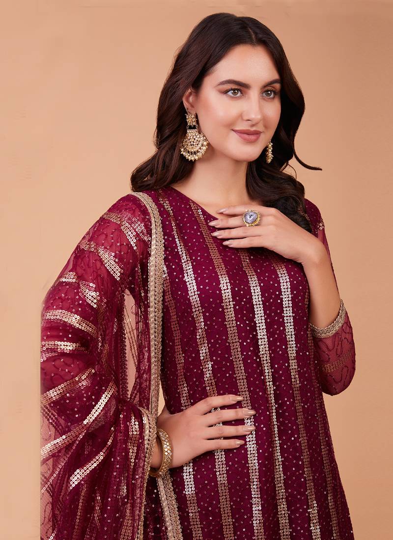 Maroon georgette sequins pakistani salwar kameez semi stitched