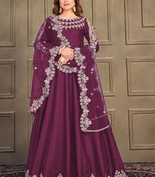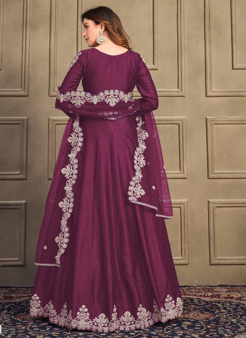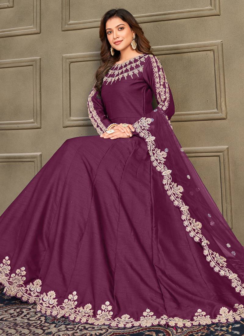 Wine art silk embroidered anarkali salwar kameez semi stitched