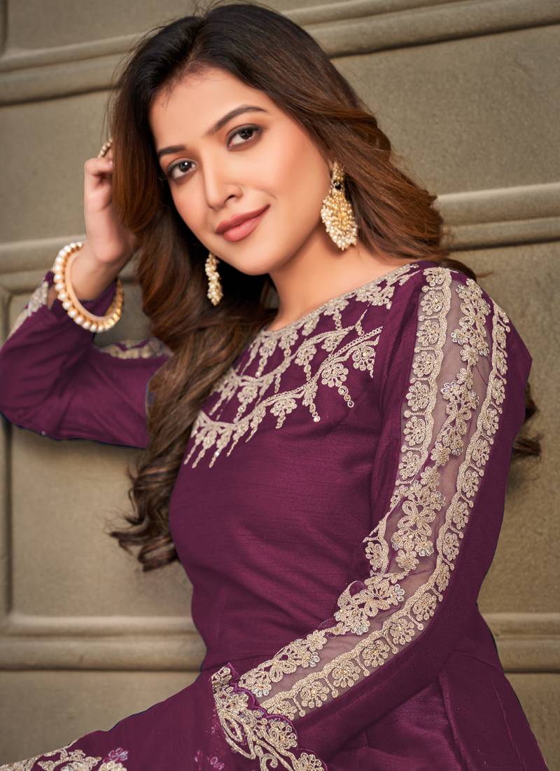 | Product Name | Wine Art Silk Embroidered Anarkali Salwar Kameez | |