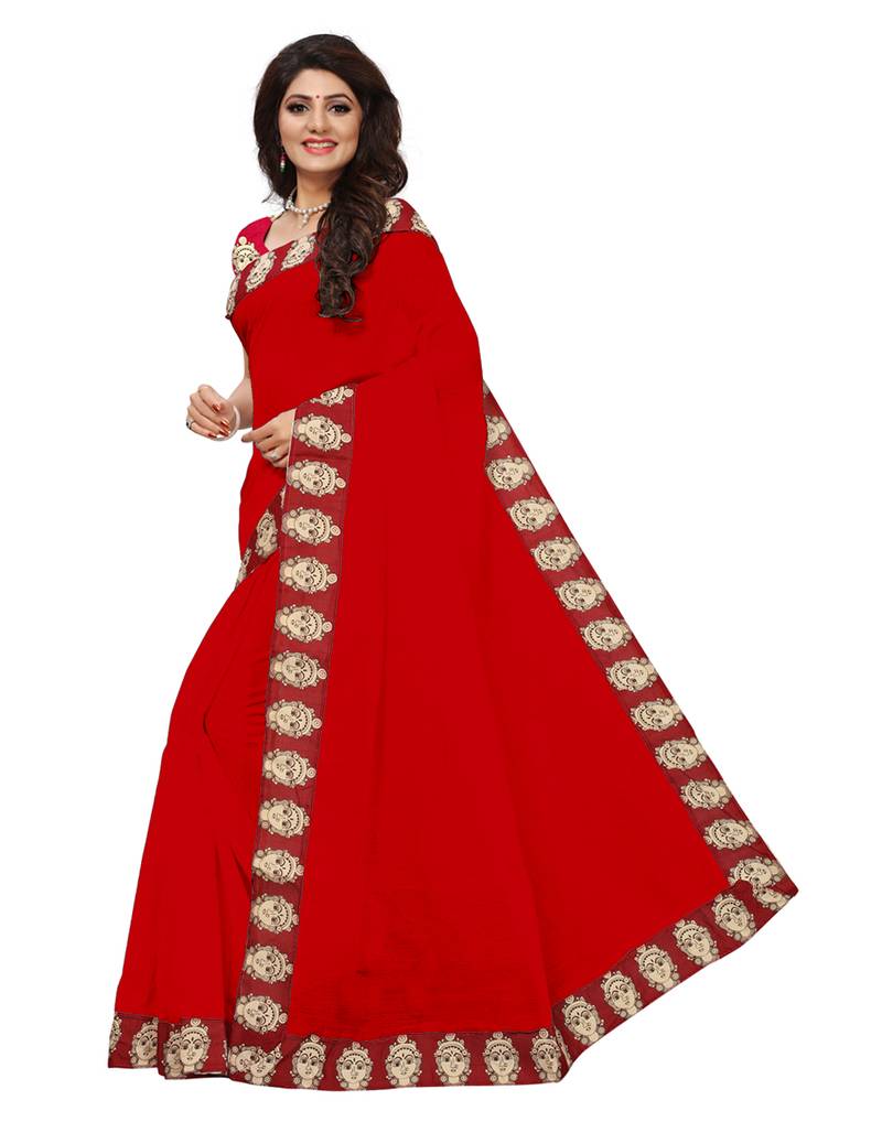 | Product Name | Red Plain Chanderi Saree With Blouse | |
