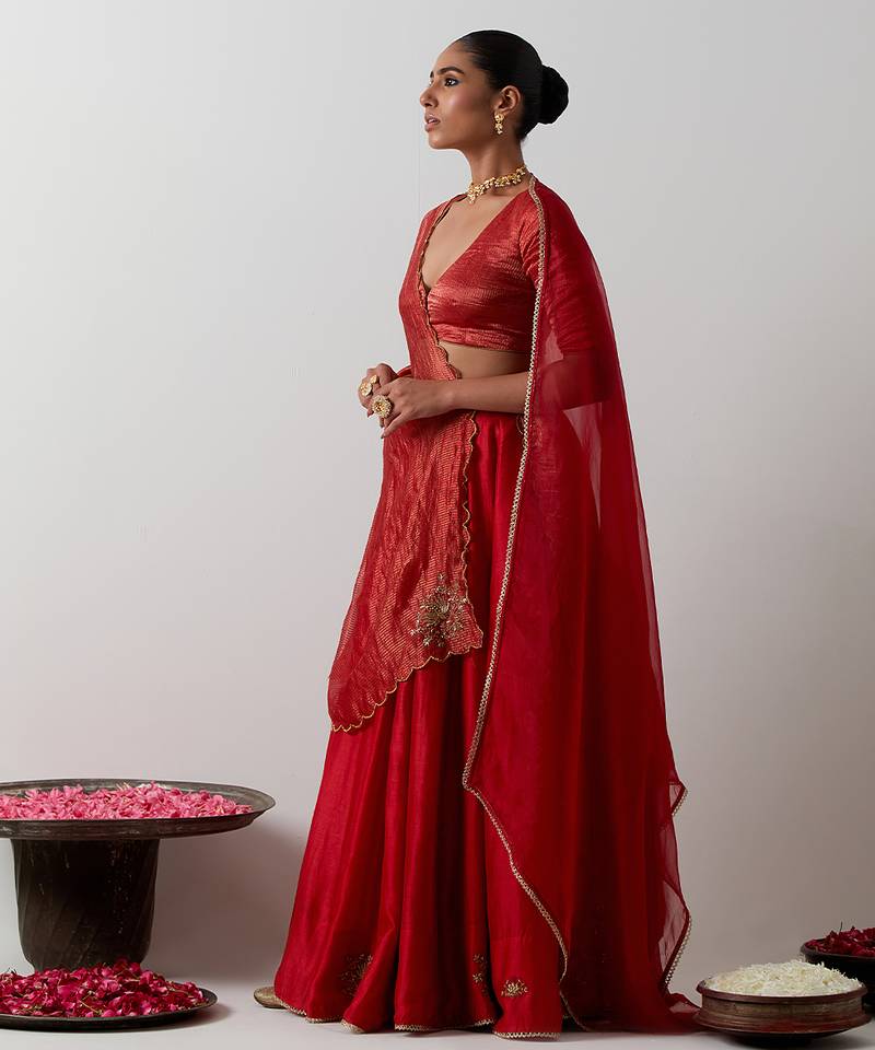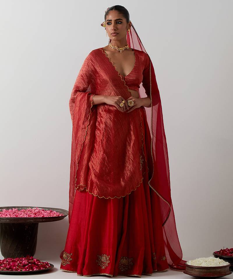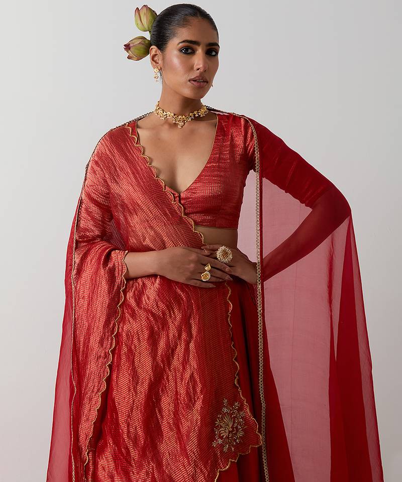 | Product Description | This Red Plain Chanderi Lehenga Set Brings Together Simplicity And Elegance In A Timeless Silhouette. Crafted From Soft, Lightweight Chanderi Fabric, It Offers A Graceful Flare And Subtle Sheen. Perfect For Festive Events, Weddings, Or Traditional Celebrations, This Ensemble Delivers Classic Charm With Comfortable, Understated Sophistication.