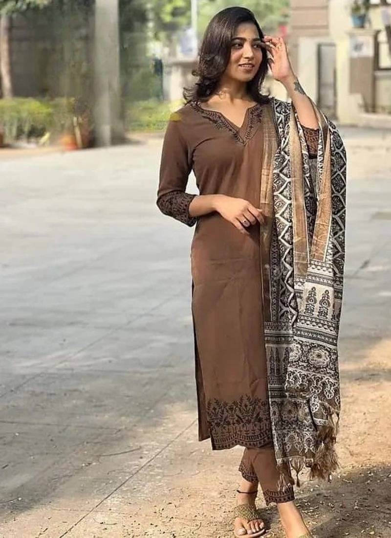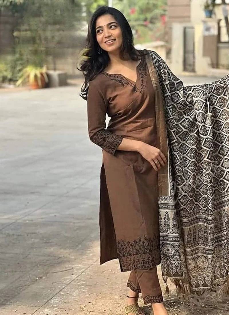 | Product Description | Refined, Timeless, And Effortlessly Elegant — This Brown Embroidered Cotton Suit Set With Dupatta Is Designed For Understated Sophistication. Crafted From Premium Breathable Cotton, The Kurta Features Intricate Embroidery That Adds Depth And Artisanal Charm. Paired With Coordinated Pants And A Gracefully Printed Dupatta, This Ensemble Offers A Perfect Balance Of Comfort And Elevated Style—Ideal For Intimate Gatherings, Festive Days, Or Polished Everyday Wear. Fabric: Premium Cotton