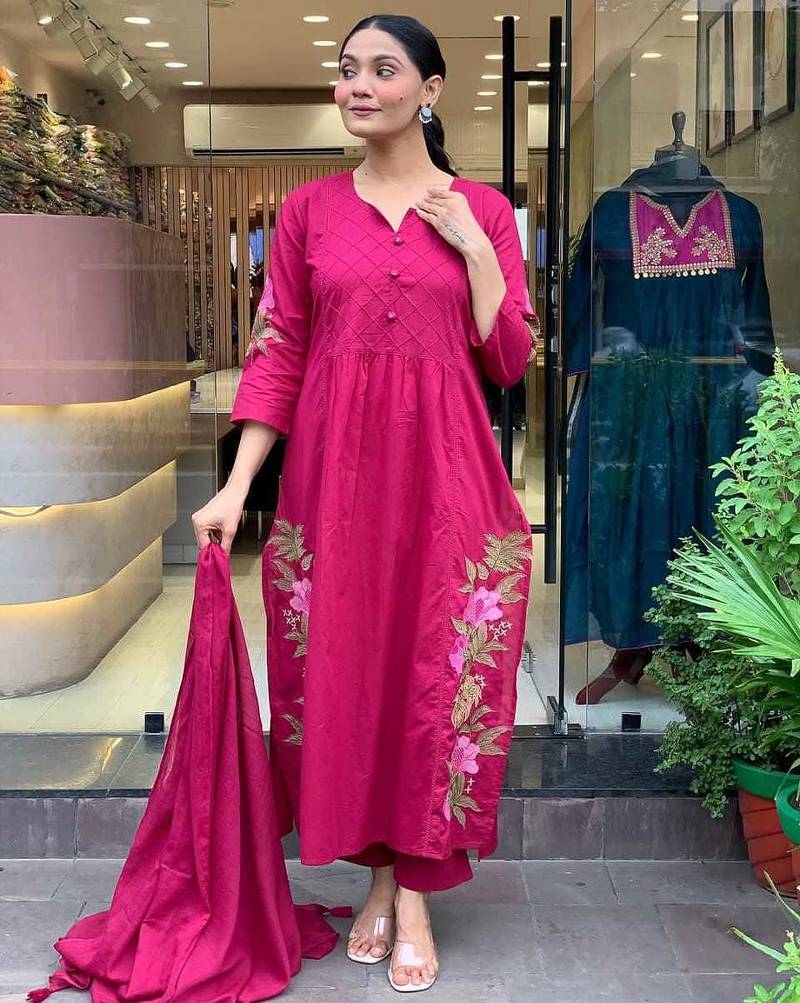 | Product Name | Rani Pink Embroidered Cotton Kurta Set With Dupatta | |