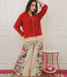 | Product Name | Red Cotton Lace Trim Shirt With Multicolour Printed Palazzo Set | |