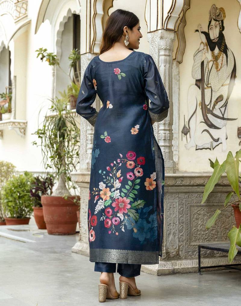 Product Name | Ethnic Festive Wear Blue Chanderi Cotton Stitched Suit With Dupatta | |
