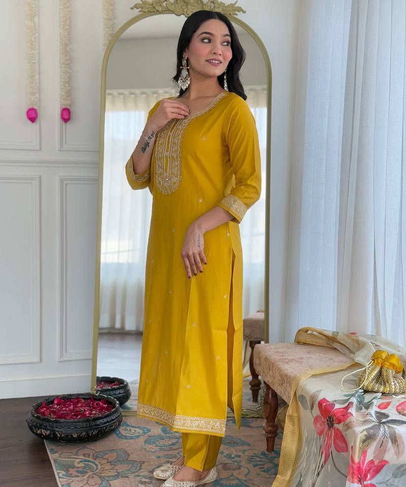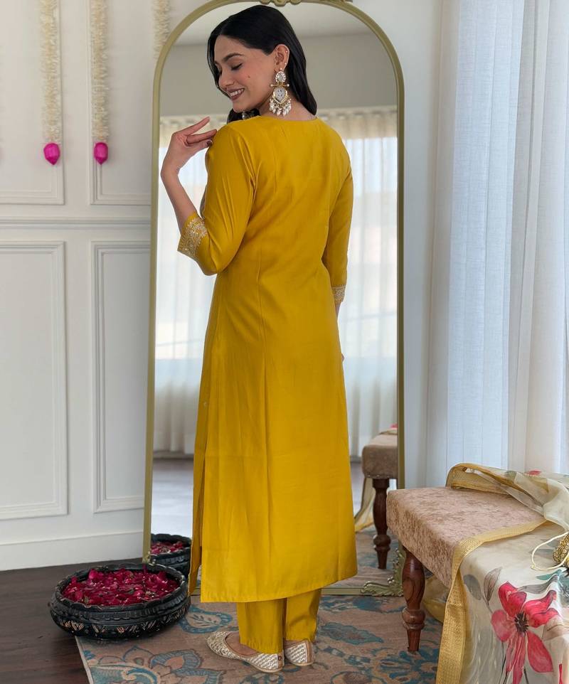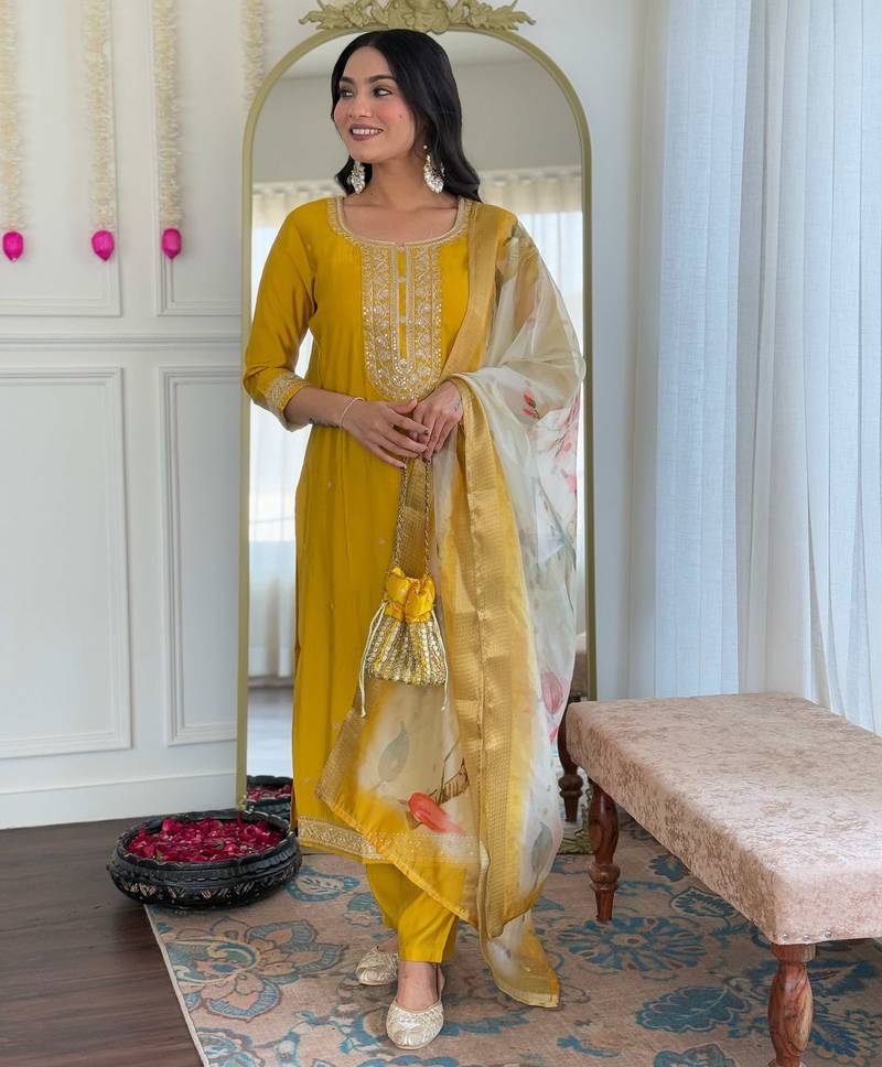 Product Name | Ethnic Festive Wear Mustard Viscose Stitched Suit With Dupatta | |