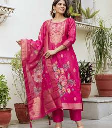 Ethnic festive wear red chanderi cotton stitched suit with dupatta
