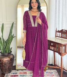 Ethnic festive wear wine georgette stitched suit with dupatta
