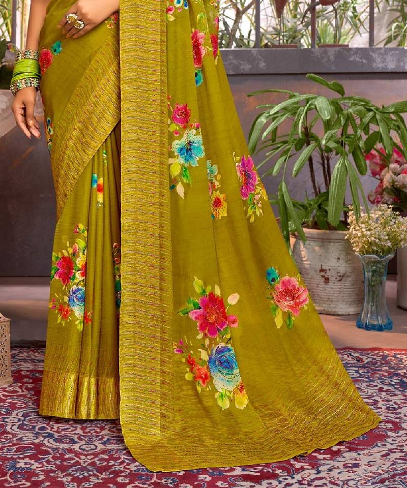 | Product Description | Vishal Prints Dark Mustard Digital Print Chiffon Saree With Stone Work |
