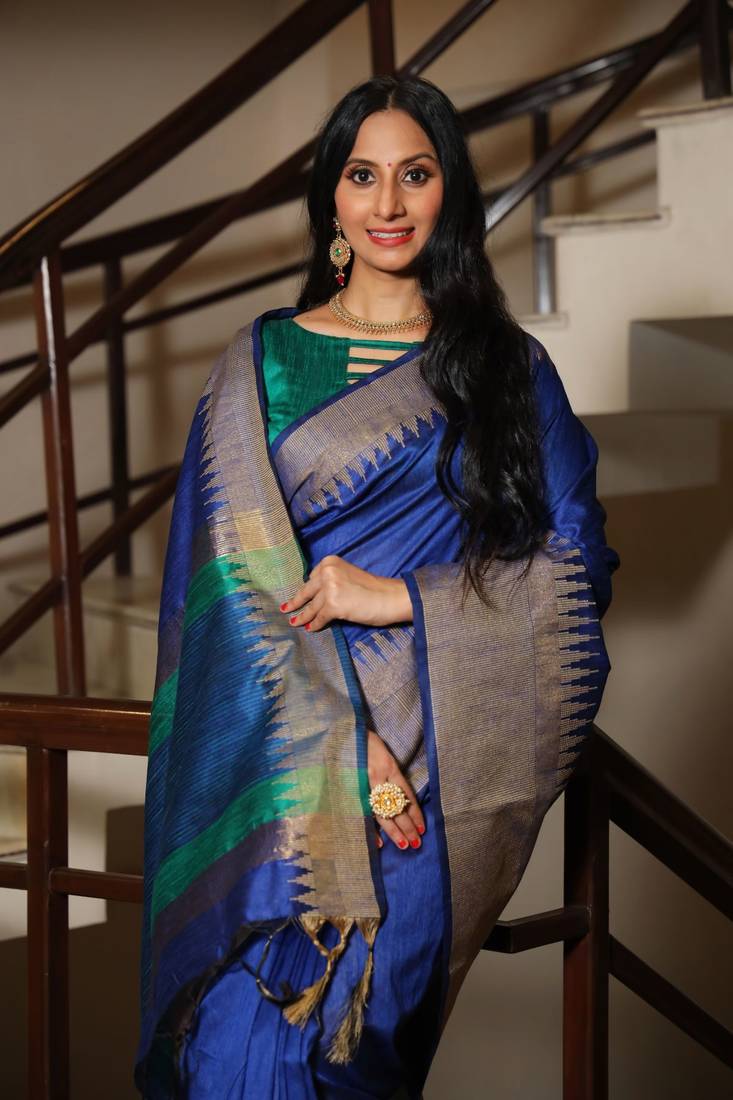 | • | Saree | : | Color- Navy Blue / Fabric- Raw Silk |