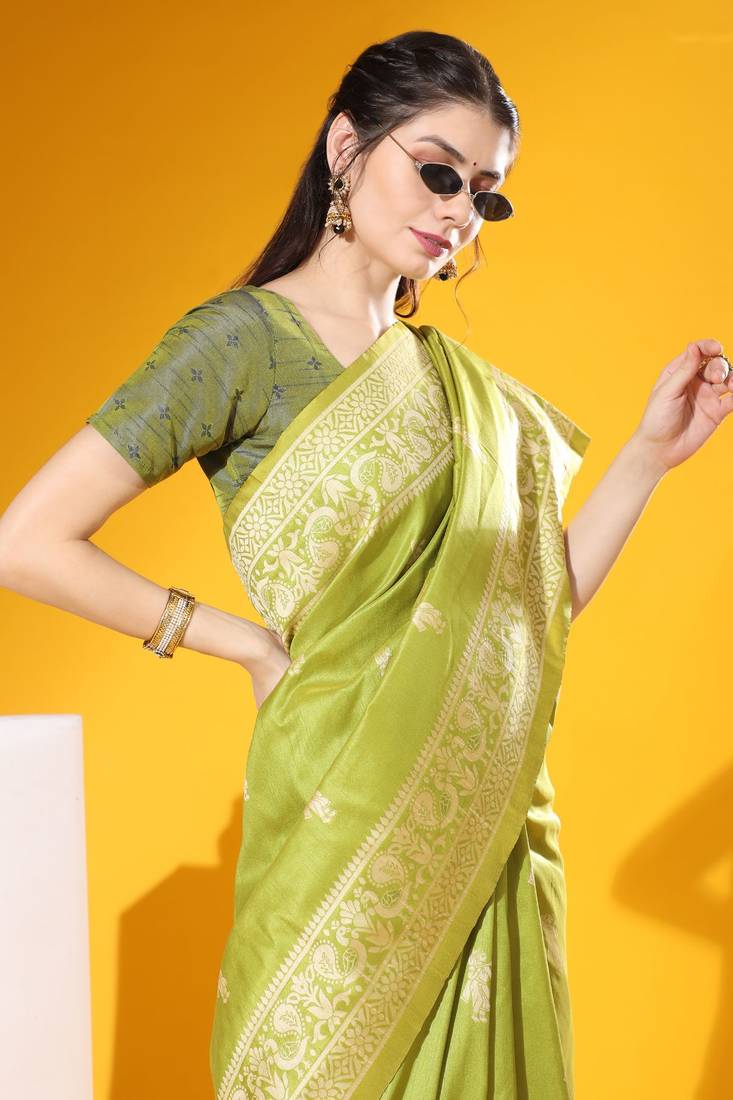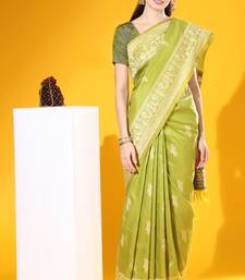| • | Saree | : | Color- Olive / Fabric- Raw Silk |
