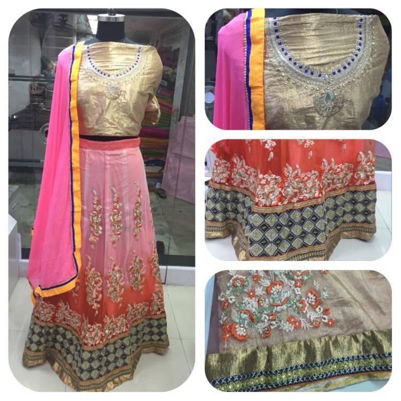 | Product Name | Orange Embroidered Net Unstitched Ghagra Choli | |