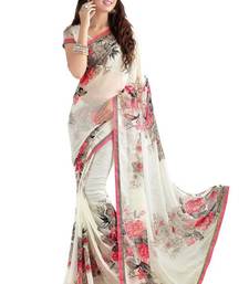 White printed georgette saree with blouse