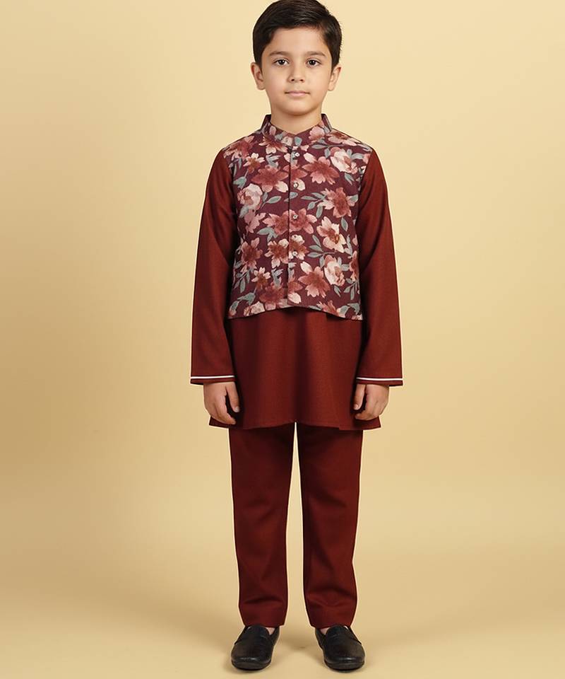 | Product Name | Burgundy Printed Cotton Nehru Jacket Set | |