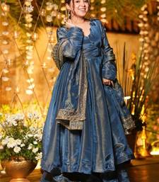 Product Name Navy Blue Embroidery Vichitra Silk Fully Stitched Anarkali Suit Set
