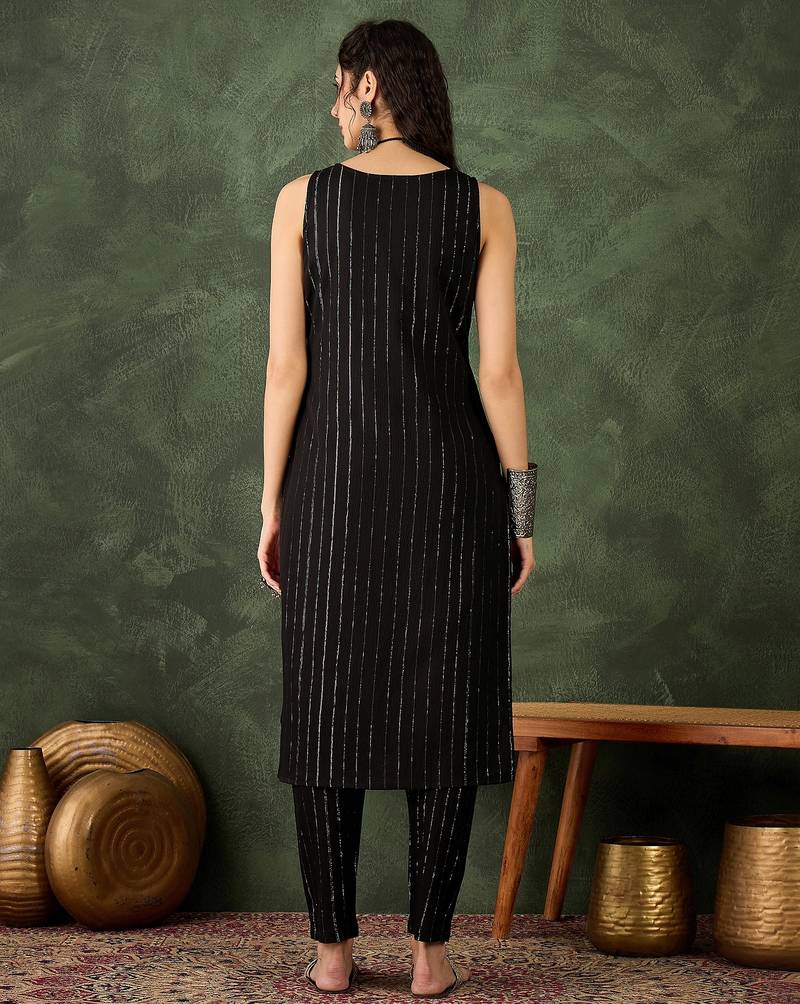 Black women kurta pant set stitched