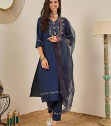 Blue women kurta pant dupatta set stitched