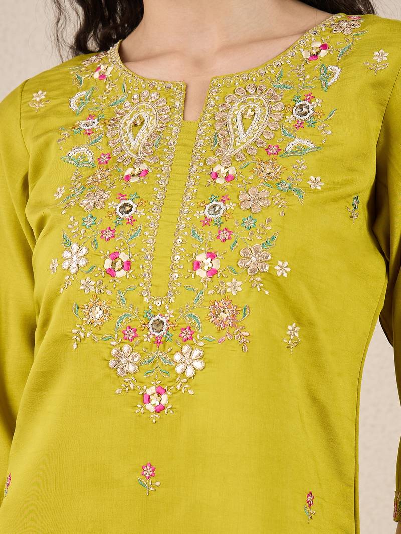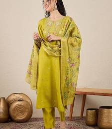 Green women kurta pant dupatta set stitched