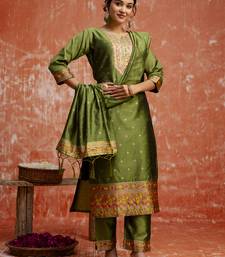 Green women kurta pant dupatta set stitched