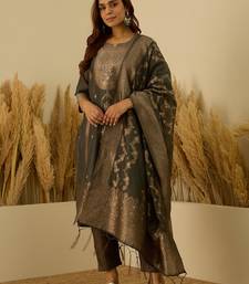 Grey women kurta pant dupatta set stitched