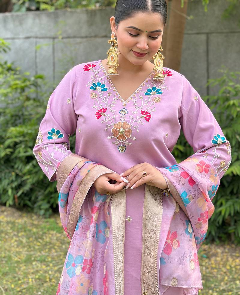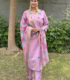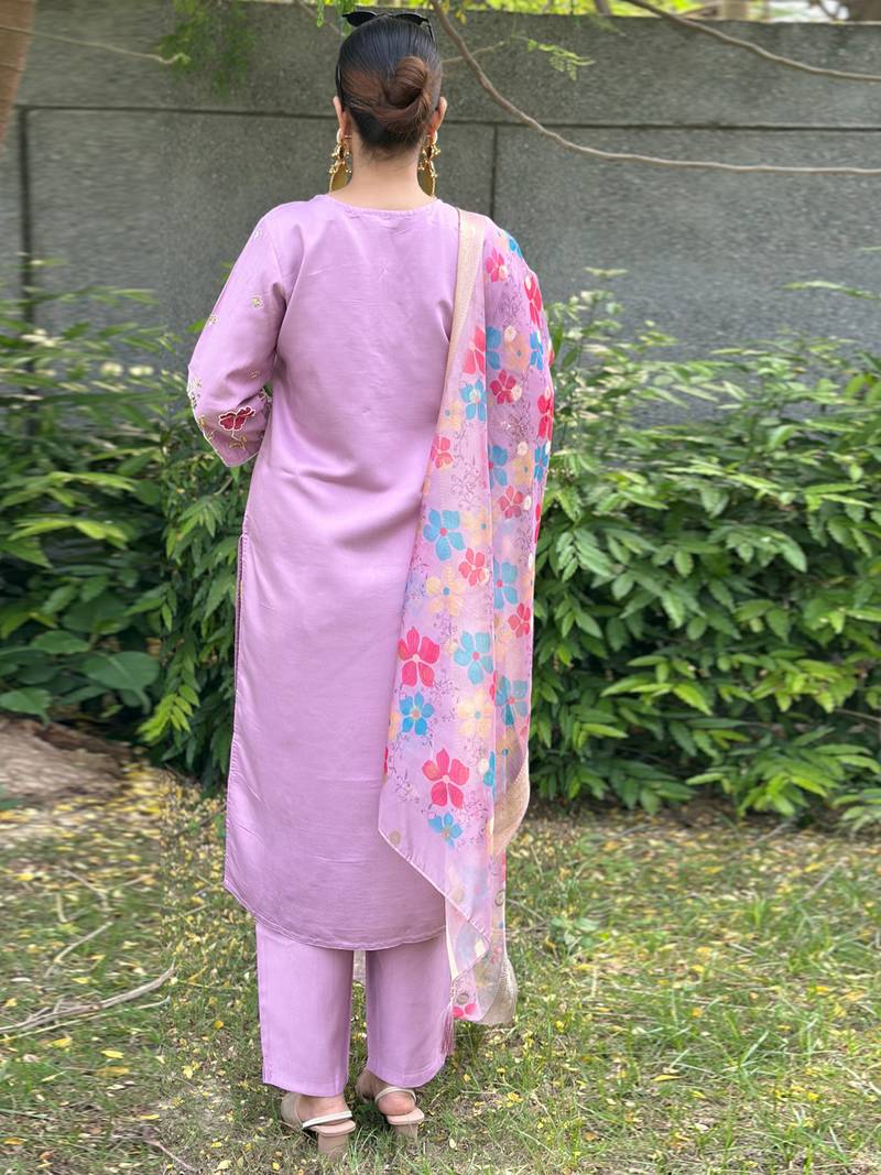 Lavender women kurta pant dupatta set stitched