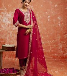 Maroon women kurta pant dupatta set stitched